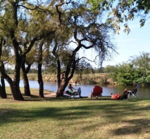 El club River es uno de los puntos más elegidos por vecinos y turistas para pasar las tardes de calor en la pileta, hacer deportes, comer un asado en familia o incluso acampar bajo sus frondosos árboles a orillas del Río Areco.