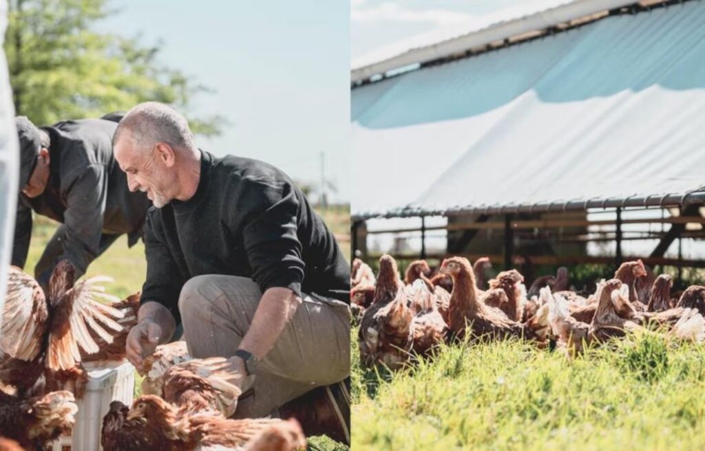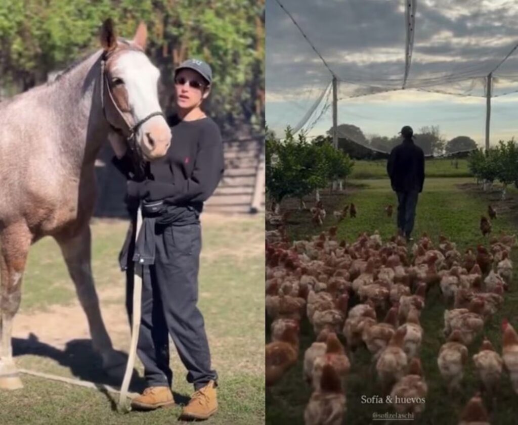 Las redes sociales dieron cuenta del momento. En una historia publicada por Petersen en Instagram, se ve a Zelaschi caminando con estilo relajado entre gallinas, alimentándolas y recogiendo huevos que, más tarde, serán parte de los platos que ambos preparan juntos.