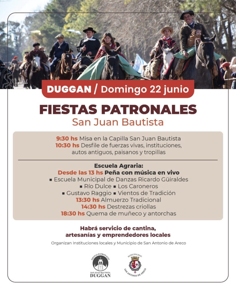 La localidad de Duggan se prepara para vivir este domingo 22 de junio una nueva edición de sus Fiestas Patronales en homenaje a San Juan Bautista, su santo protector.
