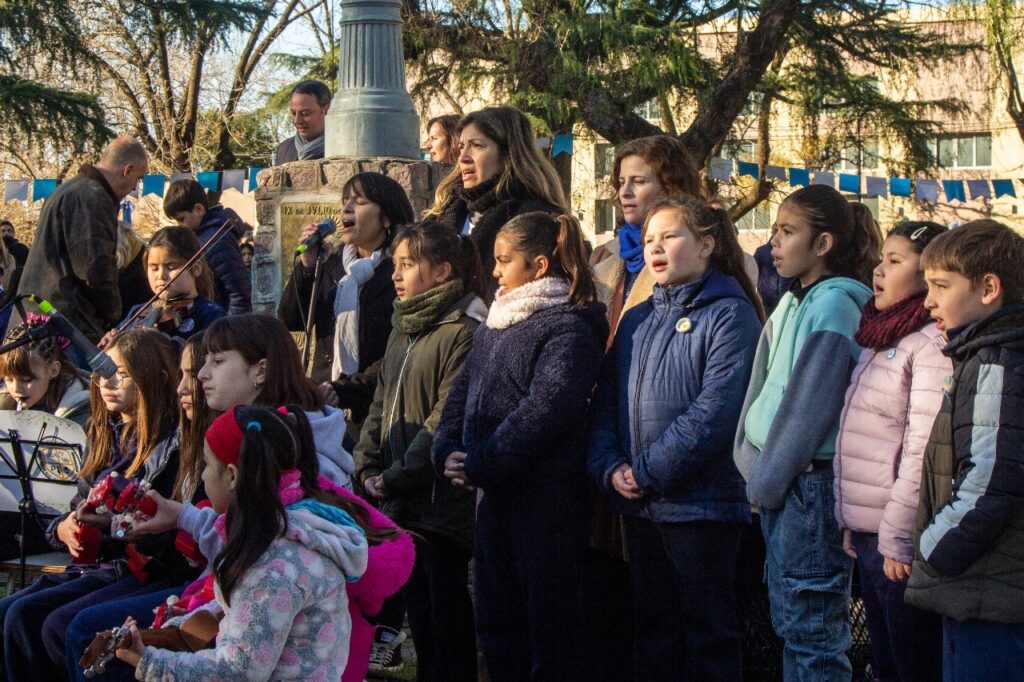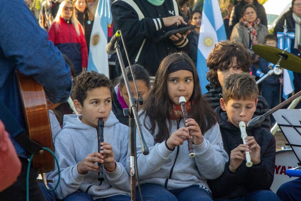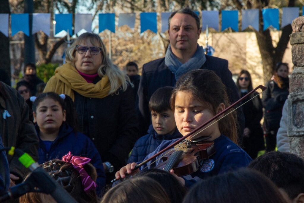 La Escuela Primaria N° 4 tuvo un rol central en la organización. Su orquesta institucional, bajo la dirección del profesor Pablo Hormachea, interpretó una sentida versión de “Aurora”, acompañada por la voz solista de Eliana López, momento que emocionó a todos los presentes.