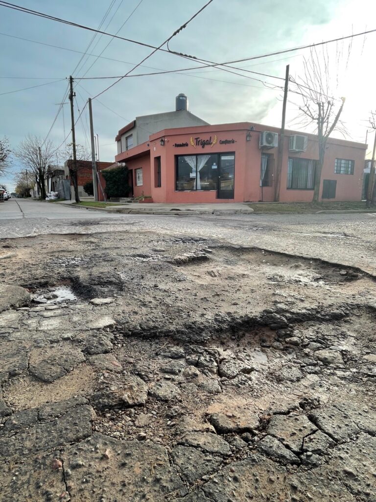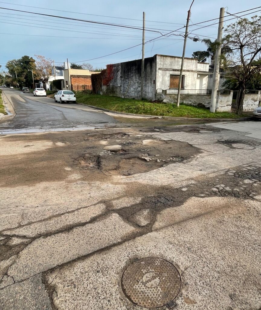 Si bien hay muchos puntos del pueblo con el asfalto y el pavimento roto, la esquina de Zapiola y Fitte es un caso emblemático y que sirve testigo.